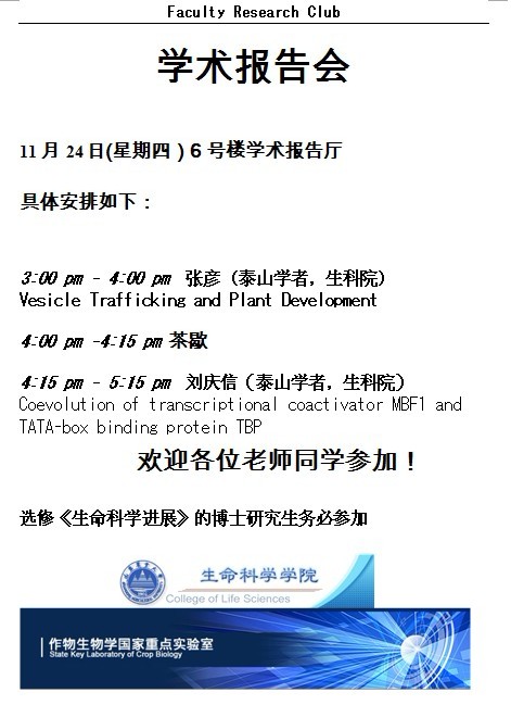 生命科學學院-張彥、劉慶信教授學術報告