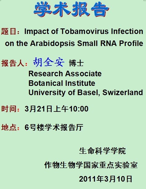 生命科學學院學術報告-瑞士巴塞爾大學胡全安博士