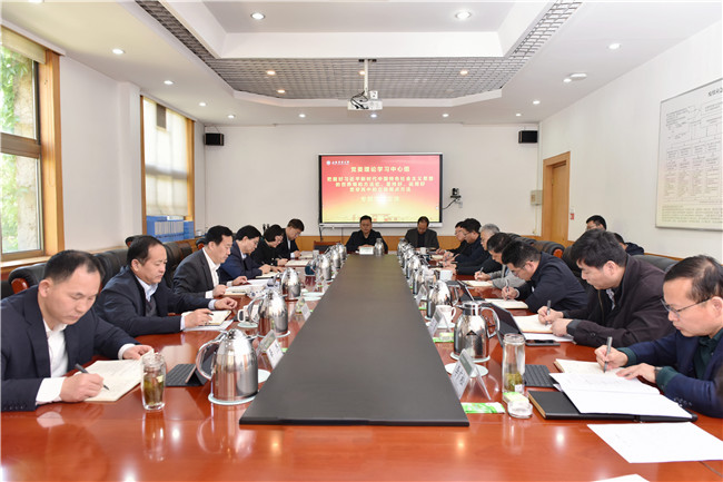 徐劍波在發言時表示,習近平新時代中國特色社會主義思想是當代中國馬克思主義、二十一世紀馬克思主義,是中華文化和中國精神的時代精華,實現了馬克思主義中國化時代化新的飛躍,為全面建成社會主義現代化強國、以中國式現代化全面推進中華民族偉大復興提供了科學指引。主題教育開展以來,學校聚焦“學懂”習近平新時代中國特色社會主義思想目標任務,通過舉辦讀書班、組建宣講團、制定學習計劃、編印學習材料、建設專題網站等方式,組織黨員干部認真讀原著、學原文、悟原理,結合工作實際認真思考,努力把習近平新時代中國特色社會主義思想轉化為堅定理想、錘煉黨性和指導實踐、推動工作的強大力量,取得了扎實成效。