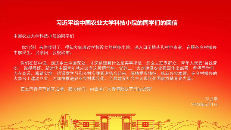 中共中央總書記、國家主席、中央軍委主席習近平近日給中國農業大學科技小院的同學們回信,在山東農業大學廣大青年學生中引起熱烈反響。在全國重點實驗室、在學校各個科技小院實驗站點、在青年學生活動場所...廣大青年學生自發組織起來認真學習、廣泛熱議回信精神同學們紛紛表示,要牢記習近平總書記殷殷囑托,志存高遠、腳踏實地,厚植愛農情懷,練就興農本領,在服務鄉村振興戰略,推進農業農村現代化建設,全面建設社會主義現代化國家的實踐中貢獻青春力量。