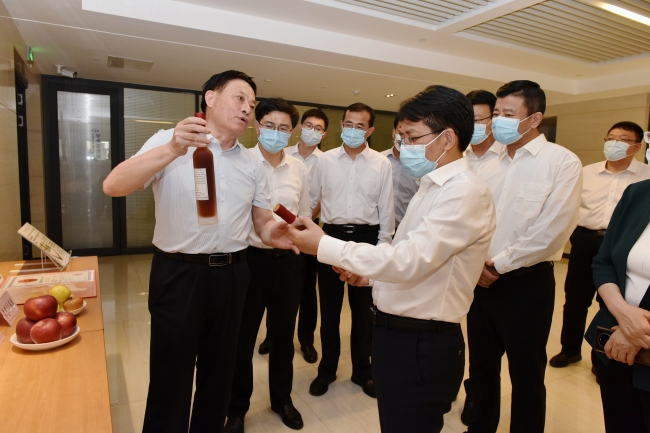 鄧云鋒參觀學校校史館,調(diào)研小麥育種全國重點實驗室、小麥遺傳改良及基因組學團隊實驗室和果樹種質(zhì)資源與遺傳育種團隊實驗室,詳細了解學校辦學治校、人才培養(yǎng)、科研創(chuàng)新、成果轉(zhuǎn)化等情況,聽取學校主題教育及“雙一流”建設成效匯報,對學校在科學研究、學科建設、人才培養(yǎng)等方面取得的成就給予充分肯定。他指出,長期以來,山東農(nóng)業(yè)大學矢志為國育才、持續(xù)探索創(chuàng)新,為國家經(jīng)濟社會建設和地方發(fā)展作出重要貢獻。希望學校深入學習貫徹習近平總書記關(guān)于教育的重要論述,主動與國內(nèi)外高校、科研院所開展務實合作,聯(lián)合開展科技攻關(guān)、人才培養(yǎng)、平臺建設等,助力學校“雙一流”建設。要聚焦服務國家糧食安全,推進科產(chǎn)教深度融合,實現(xiàn)教育鏈、人才鏈與創(chuàng)新鏈、產(chǎn)業(yè)鏈有機銜接,攜手打造全國乃至全球頂尖的小麥產(chǎn)業(yè)研究院,為推動農(nóng)業(yè)強省建設作出更大貢獻。省委、省政府將一如既往支持山東農(nóng)業(yè)大學發(fā)展,加強主動服務和要素保障,為學校高質(zhì)量發(fā)展營造良好環(huán)境,全力推動學校“雙一流”建設。