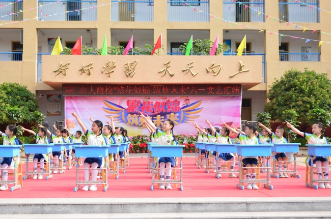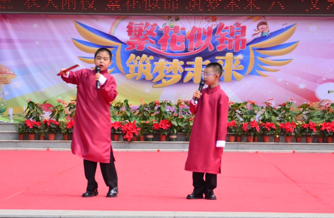 農大附校舉辦“繁花似錦 筑夢未來”文藝演出,歡慶“六一”國際兒童節。師生同臺分別表演了歌舞、相聲、詩朗誦、健美操、經典誦讀等豐富多彩的節目,孩子們用動聽的歌聲唱出心中的幸福,用質樸的語言道出進取的決心,用自己的方式表達對幸福童年、快樂成長的贊美,表達對學校及老師辛勤培養的感激之情。整場演出內容豐富,形式多樣,精彩紛呈,高潮迭起,激起師生和家長們一陣又一陣熱烈的掌聲,孩子們沉浸在節日的喜悅之中,整個校園成了一片歡樂的海洋。