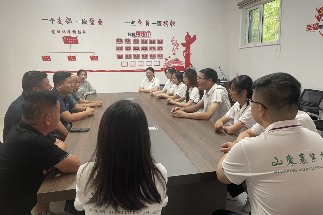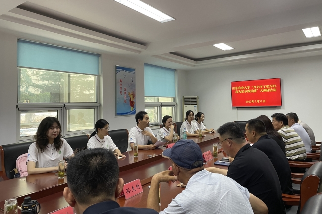 植保學(xué)院楊龍老師表示,在對南湖鎮(zhèn)進(jìn)行調(diào)研過程中,我們聽取了七位村書記的介紹,更深一步體會(huì)到了基層農(nóng)業(yè)農(nóng)村工作的不易。座談會(huì)上,一位村書記講到村里的桃樹由于品種老舊,存在不耐放、口感差等問題,很難打開市場銷路。對此我們給出了指導(dǎo)性意見,并建立了各村書記的微信交流群,力爭把工作做到實(shí)處,通過線上線下相結(jié)合的方式,為農(nóng)民提供解決思路和技術(shù)支持。通過調(diào)研,我們對南湖鎮(zhèn)有了較深的了解,厚植了愛農(nóng)情懷,也對今后建立鄉(xiāng)村驛站、持續(xù)跟進(jìn)幫扶村莊充滿信心。會(huì)后,同學(xué)們紛紛表示要做家鄉(xiāng)與高校聯(lián)系的橋梁,將三農(nóng)問題帶回學(xué)校,將科研成果帶回鄉(xiāng)村,真正做到對家鄉(xiāng)有幫助,對老百姓有用處。今后我們將持續(xù)落實(shí)萬名學(xué)子聯(lián)萬村調(diào)研工作,讓學(xué)生們在服務(wù)家鄉(xiāng),扎根基層中長本領(lǐng)、增才干,讓山農(nóng)師生的身影留在鄉(xiāng)村第一線,扎根在農(nóng)民最需要的地方。