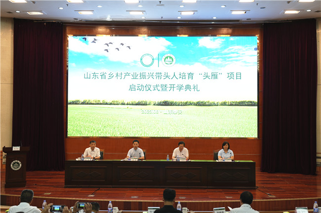 8月8日,山東省2023年鄉村產業振興帶頭人培育“頭雁”項目啟動儀式暨開學典禮在山東農業大學舉辦。農業農村部人力資源開發中心教育培訓處副處長顧鵬,山東農業大學副校長林海出席活動并致辭,山東省農業農村廳二級巡視員王成民主持啟動儀式。