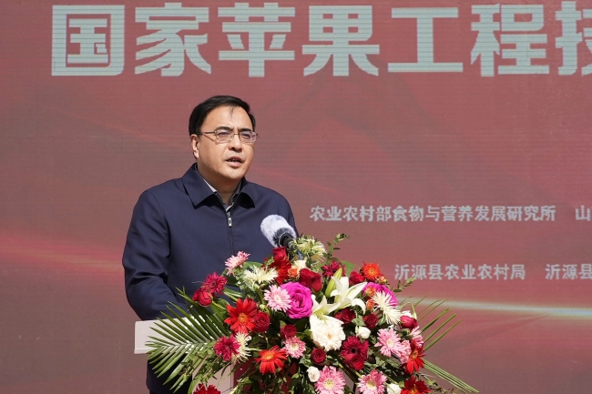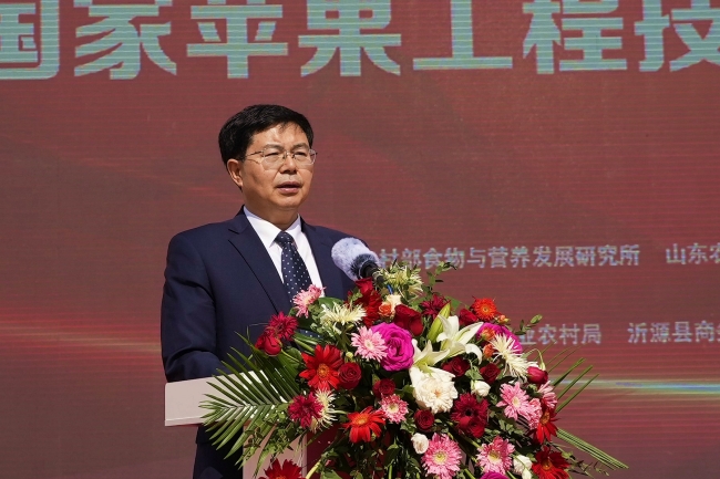 冷暢儉在致辭中指出,山東農業大學作為省屬高校“雙一流”建設排頭兵、服務鄉村振興先鋒隊,著力推進高質量發展,構建了以小麥育種全國重點實驗室、國家蘋果工程技術研究中心、土肥高效利用國家工程研究中心等國家級平臺為代表的科技創新平臺體系,牽頭承擔了國家重點研發計劃“蘋果化肥農藥減施增效技術集成研究與示范”等一系列重大科技任務。他表示,沂源蘋果產業承擔著鄉村振興的重任,承載著產業創新的理想和科技突破的厚望,學校將組織高水平研究隊伍,深入攻關果樹優良品種選育、高效栽培技術集成、老果園更新改造、果品加工及品牌打造等重點任務,用科技創新守護沂源“芯”,為推動沂源經濟社會高質量發展貢獻山農力量。