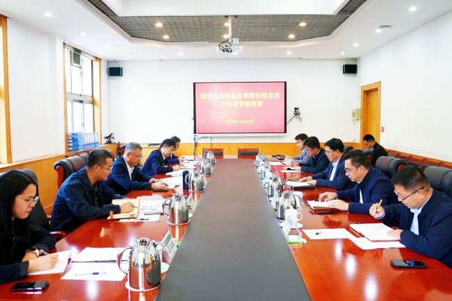 10月24日,河北農(nóng)業(yè)大學黨委副書記、校長張立杰一行來校訪問,雙方就學科建設、科技創(chuàng)新、績效管理、辦學資源優(yōu)化等方面進行深入交流,黨委副書記、校長冷暢儉參加座談會并介紹學校有關情況。