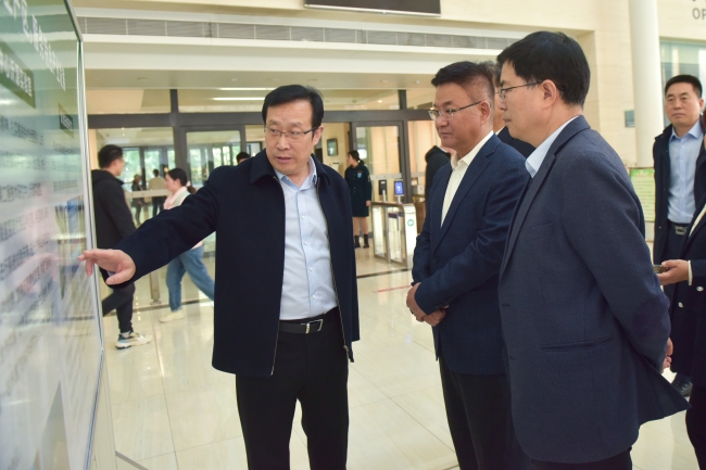 11月8日,山東省科學技術廳黨組書記、廳長孫海生帶隊來校調研指導,聽取學??萍紕撔鹿ぷ鲄R報,參觀小麥育種全國重點實驗室。學校黨委書記徐劍波,黨委副書記、校長冷暢儉,省科技廳黨組成員、副廳長潘軍,泰安市委常委、副市長姜寧參加活動。