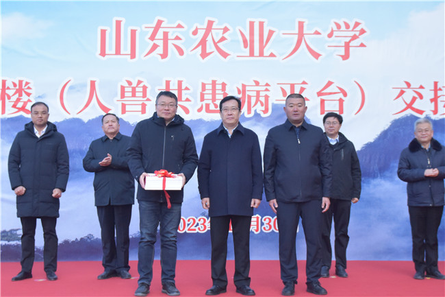 11月30日,山東農業大學動物科技樓(人獸共患病平臺)交接啟用儀式在山東農業大學泮河校區東南片區舉行。黨委書記徐劍波,黨委副書記、校長冷暢儉出席儀式,校領導嵇景濤、劉戈、單國杰參加活動,黨委常委、副校長高立明主持啟用儀式。