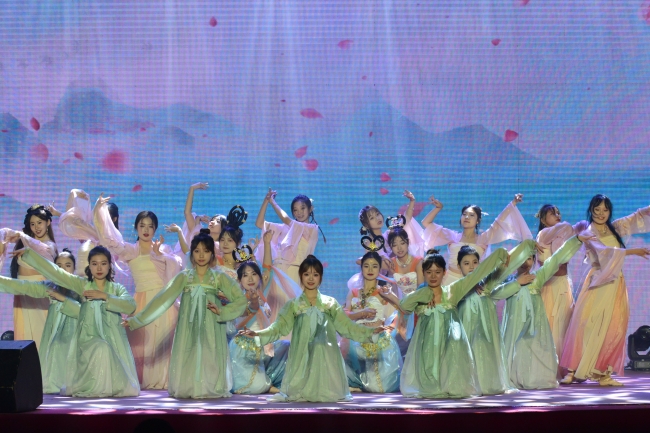 競技場上的優(yōu)秀運動員聯(lián)袂帶來的運動風采展示的蓬勃朝氣再次點燃全場。原創(chuàng)歌曲《岱下青年》用音符傳遞出岱下學子努力拼搏、奮勇爭先的精神面貌,朗誦《我們的青春》呈現(xiàn)出一代代農(nóng)大兒女在青年時期志存高遠、踔厲奮發(fā)的使命擔當。晚會在《乘風破浪》歌舞中落下帷幕。