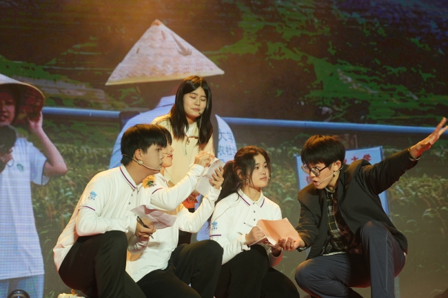 相聲《沖一流》表達了農(nóng)大人踔厲奮發(fā)、實干拼搏、矢志沖一流的決心信心。舞臺劇《我們的大調(diào)研》演繹了暑期“萬名學子聯(lián)萬村 我為家鄉(xiāng)做貢獻”大調(diào)研實踐經(jīng)歷,展現(xiàn)出山農(nóng)師生懷揣知農(nóng)愛農(nóng)情懷踏入鄉(xiāng)村,積極投身于服務一線實踐的生動場景。