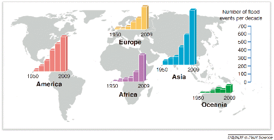 圖1. 1950-2009年間全球洪澇災害發生的頻率(引自Bailey-Serres等,2012)