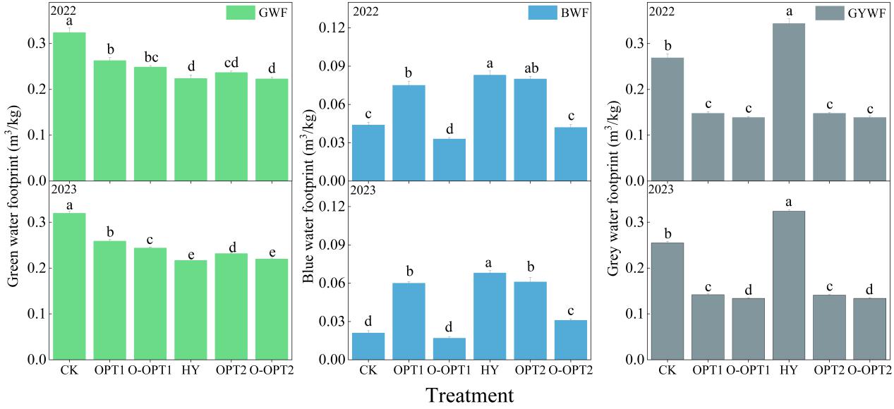 圖2.2022年和2023年綜合土壤-作物系統管理試驗的水足跡