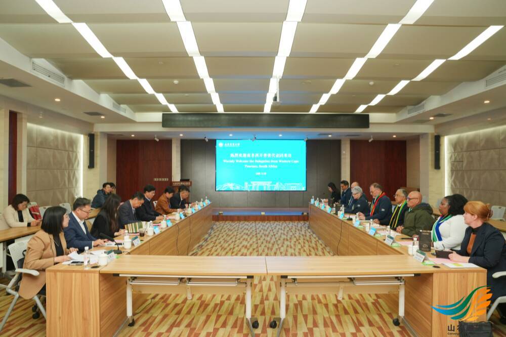 冷暢儉對雅克·隆特廳長一行的到訪表示熱烈歡迎,對山東省委外辦、泰安市外辦長期以來的支持表示衷心感謝。他指出,近年來,學校積極融入“一帶一路”倡議,深度參與構建中非命運共同體的重要實踐,與西開普省的務實合作已取得可喜進展。本月初,學校黨委書記徐劍波率代表團訪問南非西開普省,在溫迪省長和葛慧君主席的見證下,“非洲橋”農(nóng)業(yè)減貧示范基地暨山東農(nóng)業(yè)大學南部非洲科技小院正式揭牌成立,成為兩省進一步深化農(nóng)業(yè)科技交流合作的重要成果。他表示,學校致力于圍繞糧食安全、低碳農(nóng)業(yè)等領域開展科研攻關,這與西開普省推動農(nóng)業(yè)可持續(xù)發(fā)展的目標高度契合,期待以此次訪問為契機,雙方在科技小院建設、氣候適應性農(nóng)業(yè)研究等方面開展更深層次合作,共同探索農(nóng)業(yè)可持續(xù)發(fā)展的新路徑,為推動兩國農(nóng)業(yè)現(xiàn)代化和糧食安全不斷貢獻新的力量。