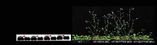 該研究通過酵母雙雜交篩選鑒定到MAPK1/2/7/14的下游靶蛋白NF-YB2 (nuclear factor Y B2)。MAPK1/2/7/14特異性地磷酸化NF-YB2蛋白第24位絲氨酸位點(S24)。超表達模擬磷酸化形式的NF-YB2(NF-YB2S24D)開花時間明顯提前,而超表達其非磷酸化形式NF-YB2S24A后,其誘導開花的效果顯著減弱(圖2)。