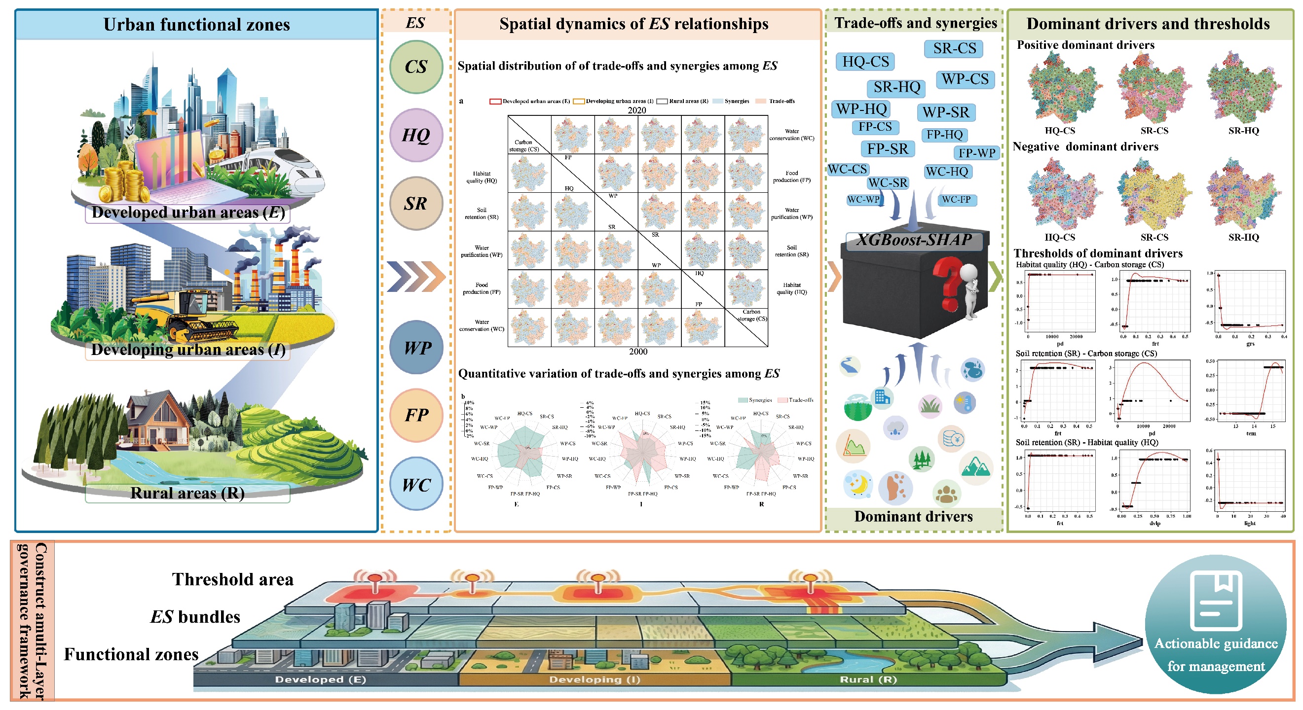 耦合條件下生態系統服務權衡—協同關系的空間分異機制及其關鍵驅動閾值,為分區精準治理提供了量化依據。