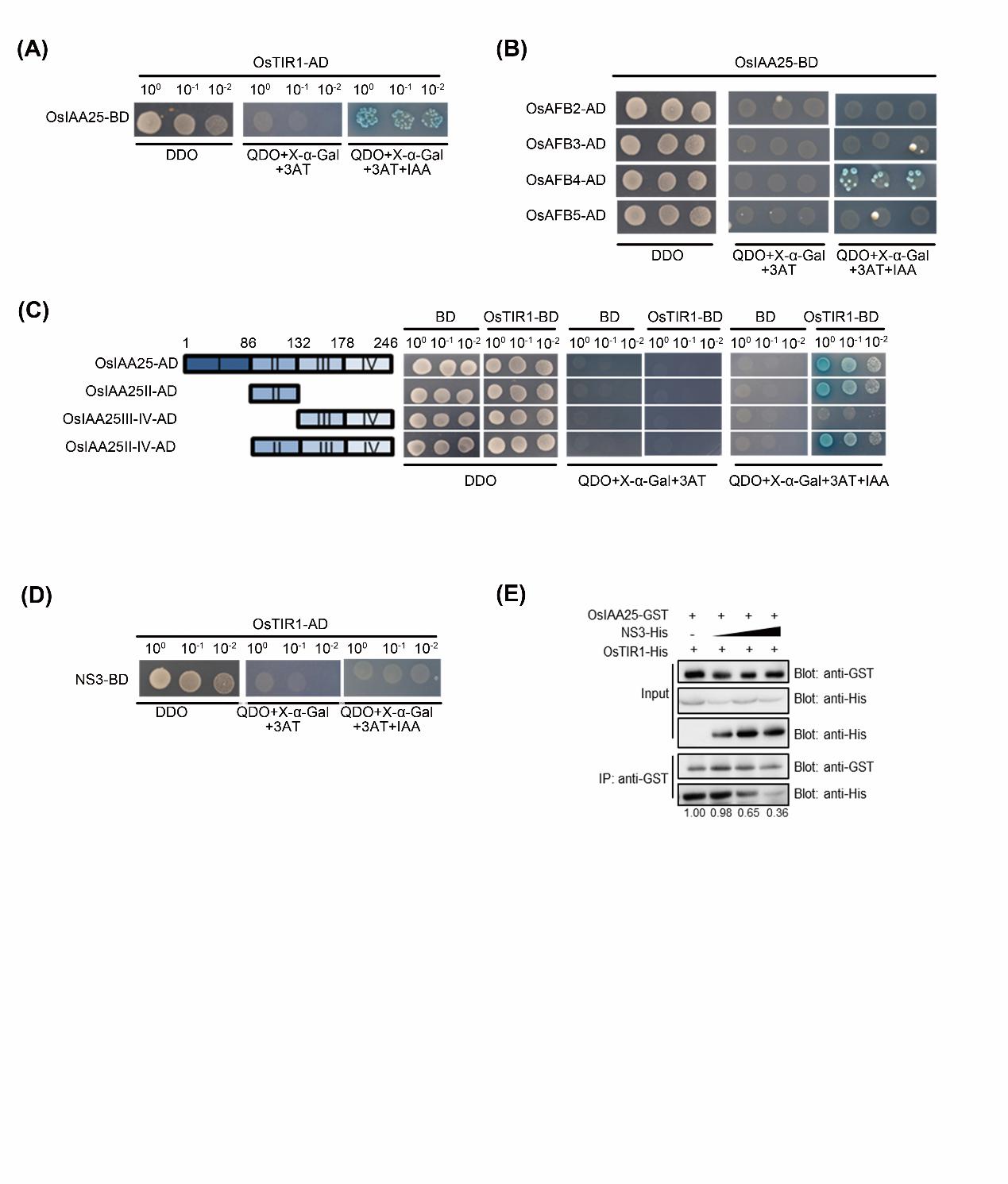 圖2 NS3蛋白通過抑制OsIAA25/OsTIR1相互作用穩定OsIAA25