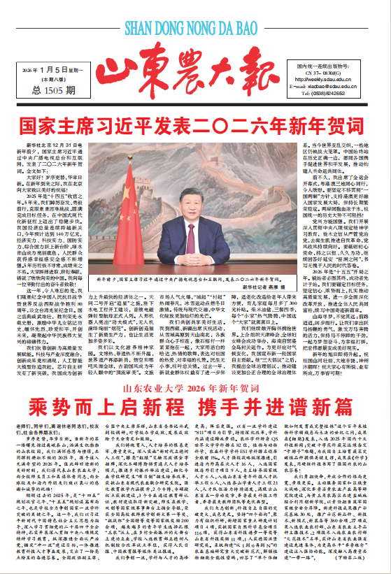 • 泰山巖巖,黃河湯湯;杏壇巍巍,鴻庠煌煌。傳承神農薪火,因教民稼穡而生;賡續齊魯文脈,因民族復興而為;矢志耕讀興邦,因強國建設而興。2026年10月15日,山東農業大學將喜迎百廿華誕,我們謹向關心支持學校建設發展的各界朋友、社會賢達、廣大校友致以崇高的敬意和衷心的感謝!